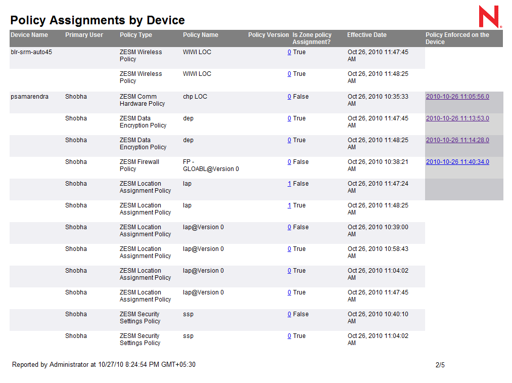 Generate the Policy Assignments by Device report for the desired device (see Section 27.2, Viewing a Predefined Report).