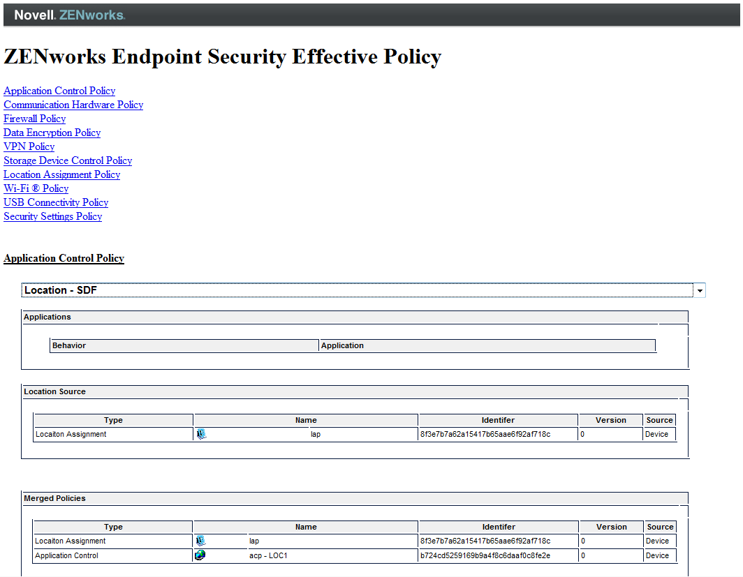 This section lists 1) the Location Assignment policies that are the source of the currently selected location and 2) the policies that are the source for the effective policy settings. The