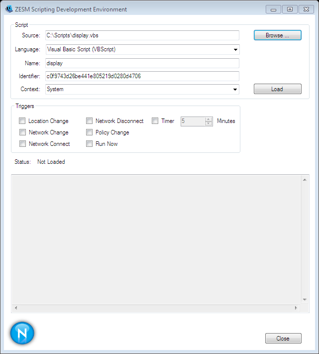 Specify the override password, then click to display the ZESM Scripting Development Environment dialog box.