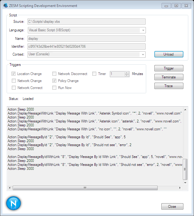 When you are done testing the script, click to remove the script from memory and keep it from executing anymore.