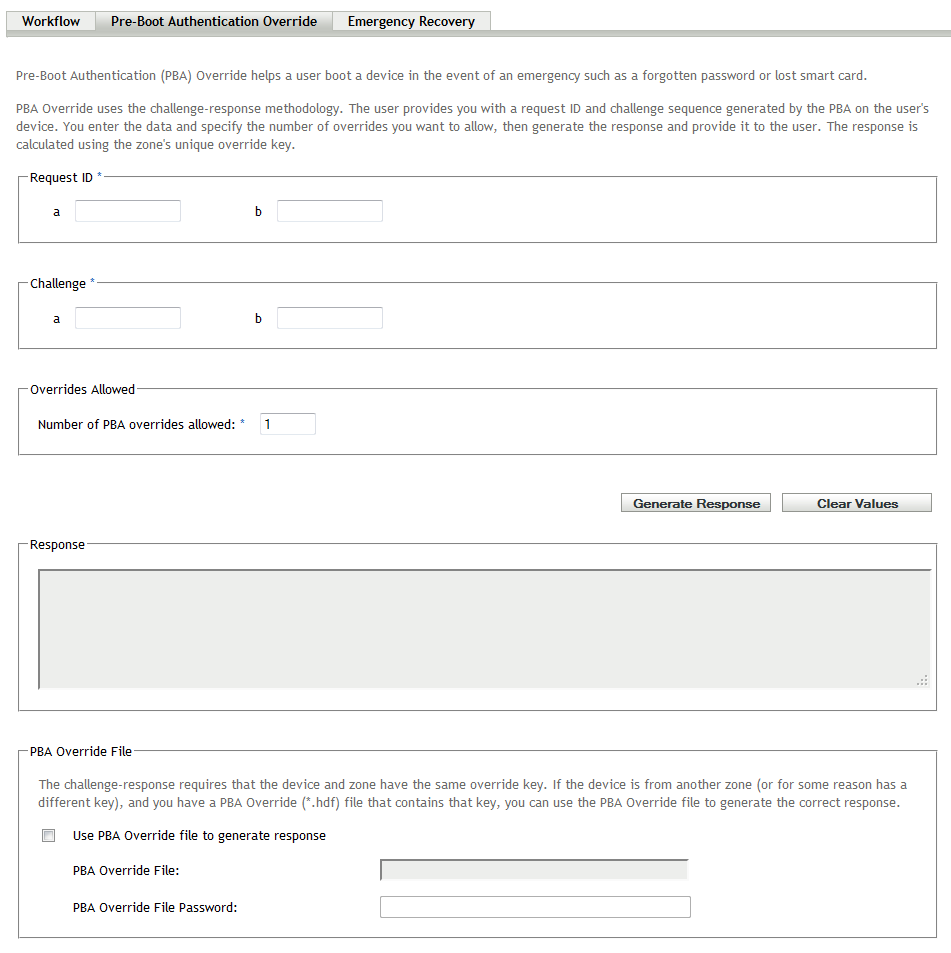 The following instructions assume that you have exported the PBA Override file from another zone and want to use it to create a response for a device from that zone. The PBA Override file contains the override key from the other zone, which is needed to create the correct response for that zone’s devices.