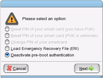 • Deactivate pre-boot authentication: This bypasses the PBA permanently.