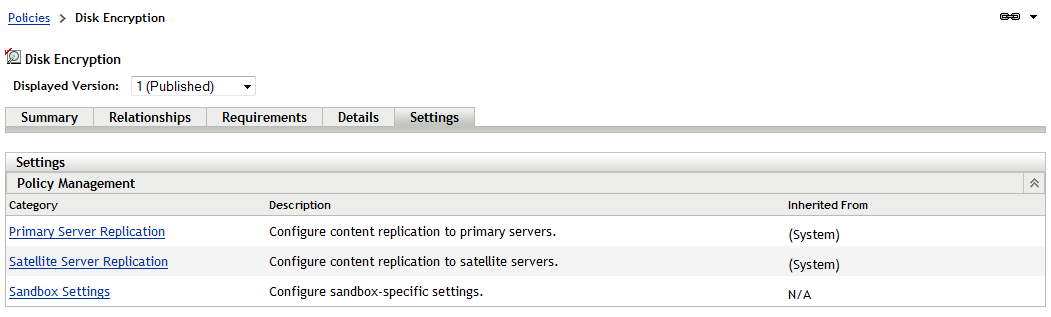 The following instructions explain how to override the content replication settings for an individual policy. For information about configuring content replication settings on a policy folder or the Management Zone, see .