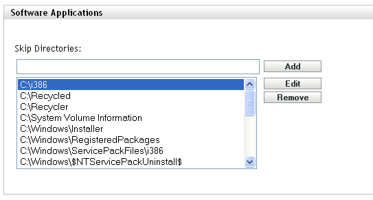 Collect Software File Information: Select this option if you want to scan for software file information that can be used to identify software products that aren’t recognized by the ZENworks Knowledgebase. If you plan to create Local Software Products and add them to the knowledgebase, this option must be selected. For more information, see Section 6.0, Creating Local Software Products.