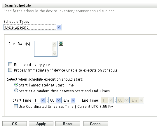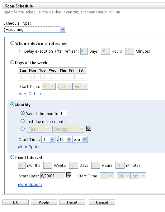 For configuring the schedule type, perform steps from Step 3 through Step 3 listed in Section 2.2.1, Configuring an Inventory Scan Schedule for the Management Zone.