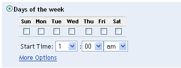 Select either and specify a number between 1 and 31, , or select the configurable field where you can choose a combination of days of the month for a recurring schedule.