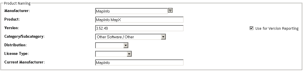 Use for Version Reporting: Select to use the product version for recognition purposes. You can use either the product version or the file version for recognition purposes. If you want to specify a version in the field to be used in the product definition, specify a value and select . You can use either the product version or the file version for identification. To use the file version, select in the Product Recognition section.
