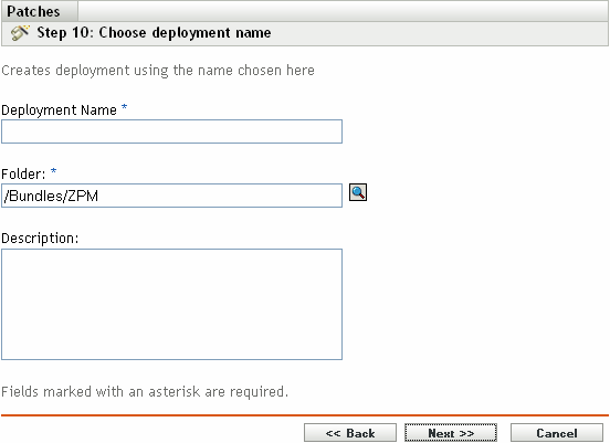 The Choose Deployment Name of the Deploy Remediation Wizard lets you customize the name of the deployment you have scheduled. Setting a deployment name is the tenth step in scheduling a deployment for a selected patch.