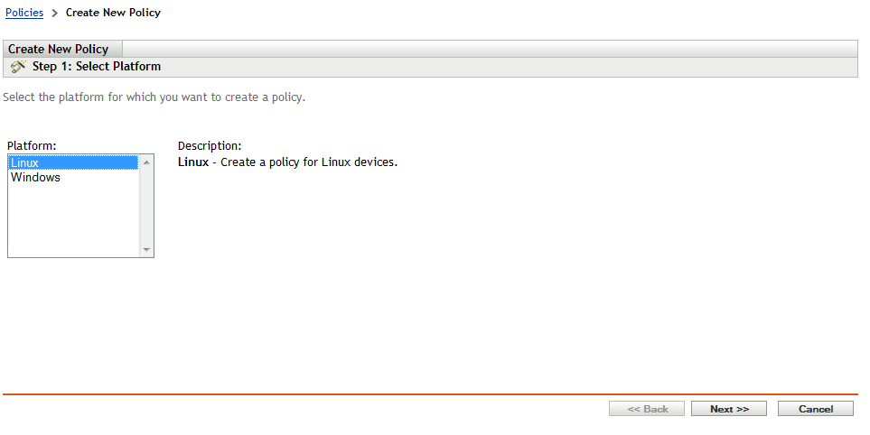 In the Policies panel, click > to launch the Create New Policy Wizard.