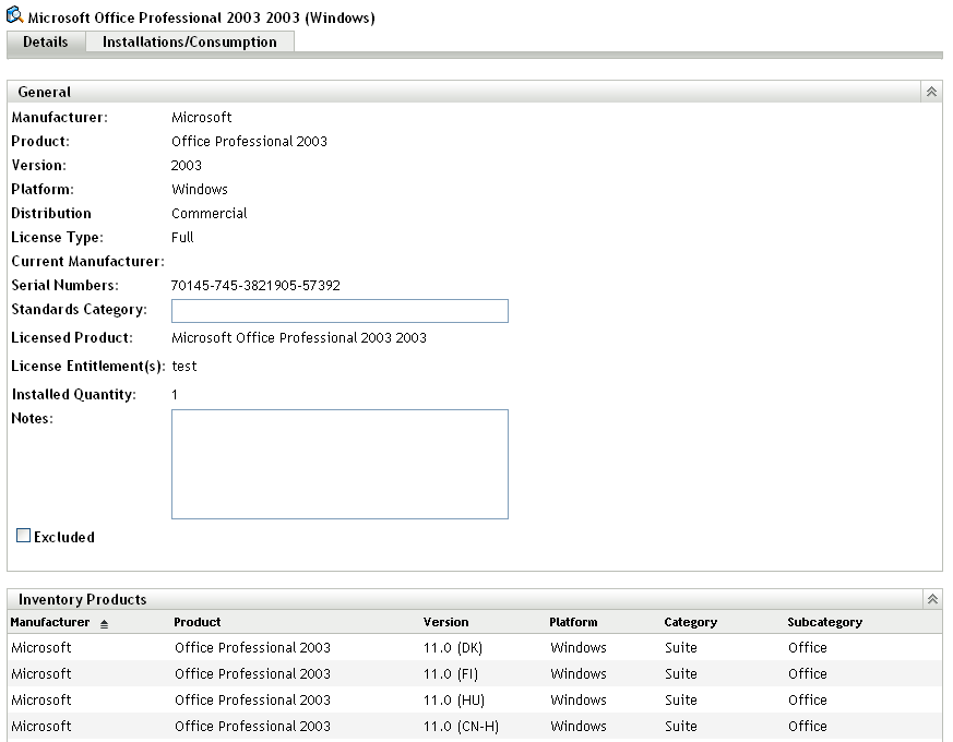 Each discovered product provides a list of the Inventory products that have been consolidated into the discovered product (see Section 8.1, How Installed Software Products Become Discovered Products). To view this list: