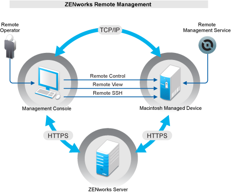 Remote Control lets you remotely control the managed device from the management console so that you can provide user assistance and help resolve the device’s problems. Remote Control establishes a connection between the management console and the managed device. With remote control connections, you can perform all the operations that a user can perform on the device. For more information, see Section 3.3.1, Managing a Remote Control Session on a Macintosh Device.