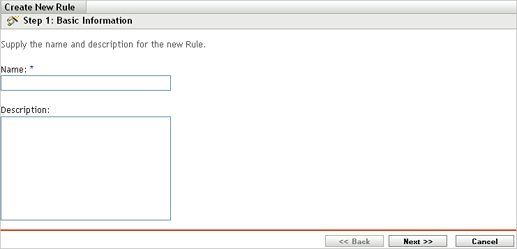 Define the rule’s name and add information to describe the rule. Name: Provide a name for the rule. Users never see the rule name; it displays only in ZENworks Control Center. The name must be different than any other registration key names and must not use any of the following invalid characters: / \ * ? : " ' < > | ` % ~. Description: Provide information about the new registration rule. The information appears only in ZENworks Control Center. |