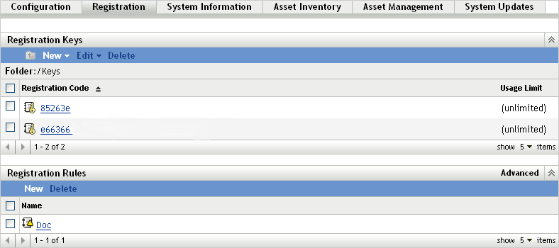 In ZENworks Control Center, click the Configuration tab, then click the Registration tab.