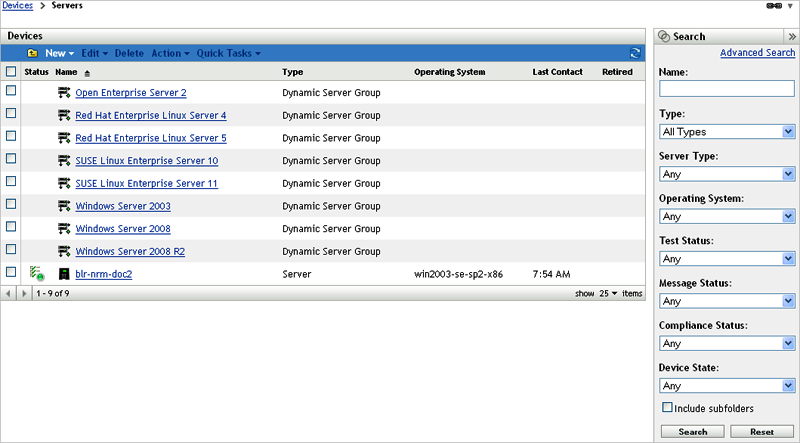 NOTE:To retire a device immediately, select the check box in front of the servers or workstations, then click Quick Tasks > Retire Device Now.