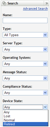 To search for only retired servers, click the underlined link next to the Servers folder to display the list of servers.