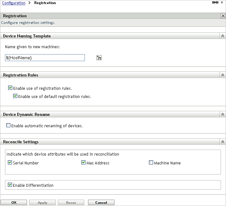 MAC Address and Machine Name selected with differentiation disabled: For a device to reconcile to the existing device object, the MAC Address or the Machine name of the existing device must match the MAC address or Machine name of the new device