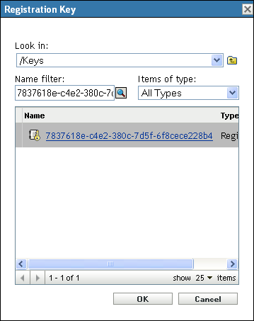 The key must already exist. For more information on creating registration keys, see Section 9.2.1, “Creating a Registration Key,” on page 66.