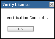 The Verify License message box indicates that the verification of the subscription license is complete or the license has expired.
