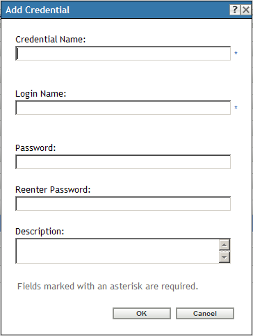 In the Credential Vault panel, click New > Credential to display the Add Credential dialog box.