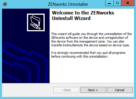 zenworks_installation_directory\novell\zenworks\bin\ZENworksUninstall.exe