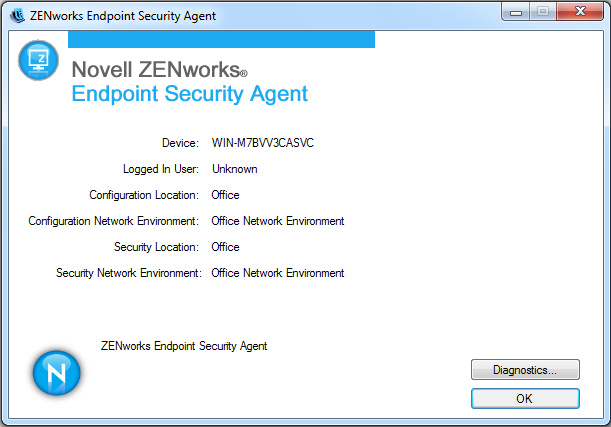In the Endpoint Security Agent Actions section, click About to display the About dialog box.