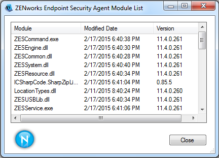 You can view a list of the Endpoint Security Agent modules that are currently loaded on a device. The list displays each module with its date and version.