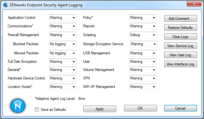The Endpoint Security Agent logs information to the device’s local disk. This includes events related to application control, firewall management, hardware device control, data encryption, and much more.