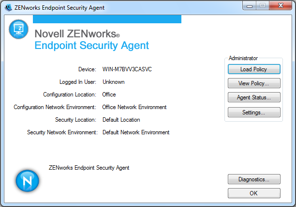 In the Endpoint Security Agent Actions section, click About to display the About dialog box.