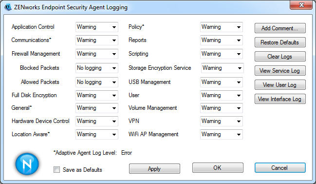 View Interface Log This log contains any Full Disk Encryption messages generated by the ZESZid.exe process. This agent process communicates policy data between the Adaptive Agent and the ZESService.exe process.