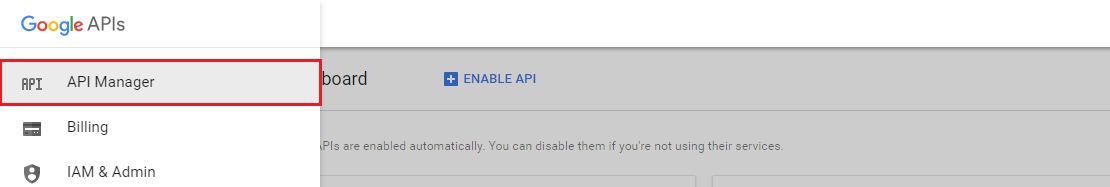 To retrieve the API key, click the Hamburger menu and click API Manager to view the API Manager page.