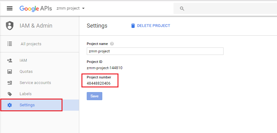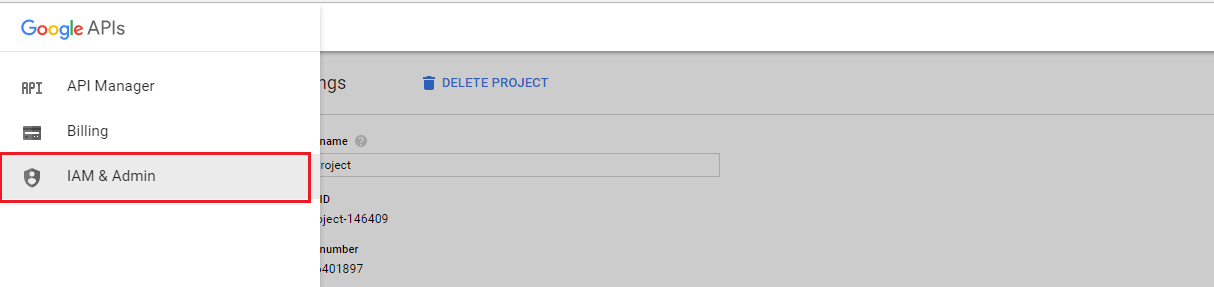 On the IAM & Admin page, click Settings. You can now view and make a note of the Project Number.