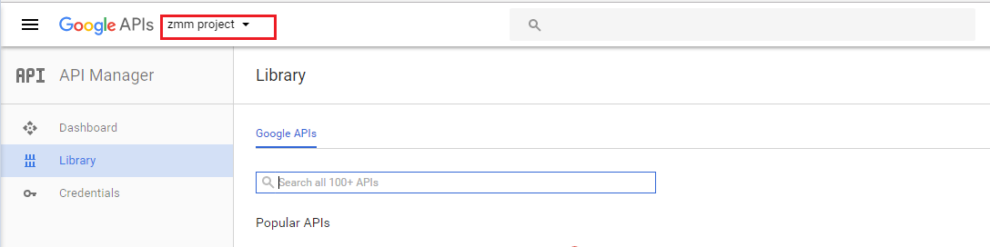 Select the existing GCM project from the drop-down menu appearing on the top-left corner of the page.