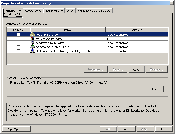 Make any additional changes, schedule the policy, and make associations as necessary. For information, see Section 15.0, Setting Up User and Workstation Package Policies.