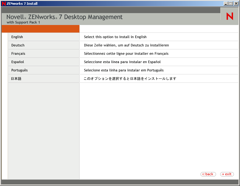 IMPORTANT:If you remove the Novell ZENworks 7 Desktop Management with Support Pack 1 Program CD from the CD drive during the installation, or if you lose your connection to the server you are installing to, the installation program stops and does not proceed. To terminate the installation process, open the Windows Task Manager, click , select javaw.exe, then click .