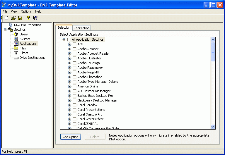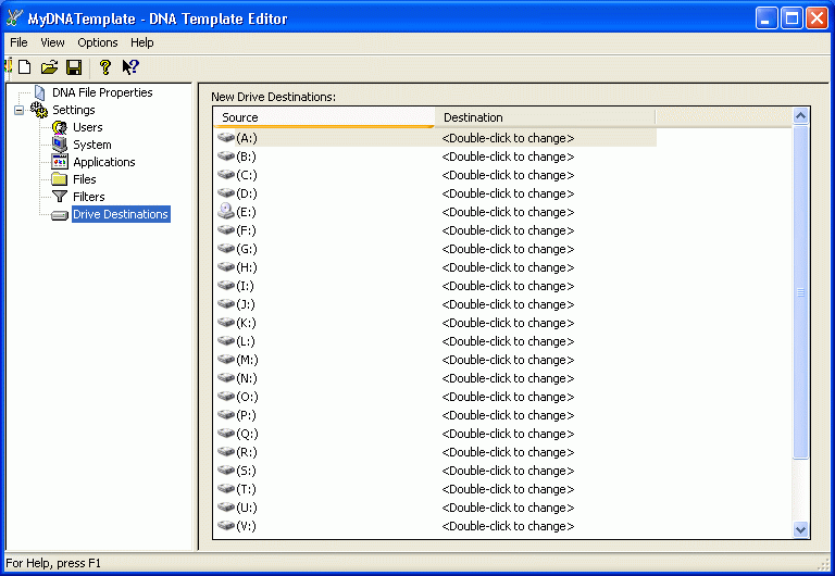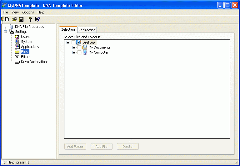 When you create a template, you select settings for users, the system, applications, files, filters, and drive destinations.