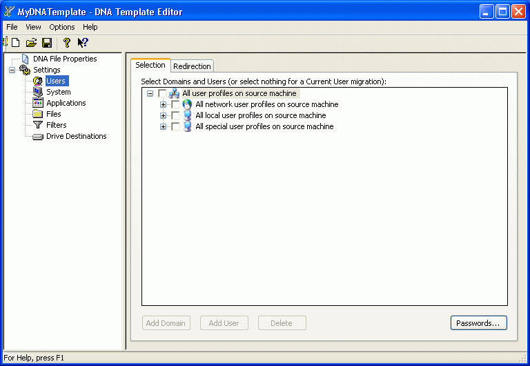 Special Users: The special users branch lets you add special local user profiles and is included for selecting the administrator or default user on Windows NT* or Windows 2000 systems. The default user profile settings can be migrated so that all subsequent users logging in to a Windows NT or Windows 2000 system get specified default or applications settings.