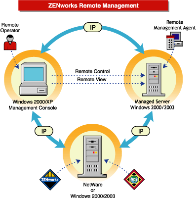 Figure 20-1 depicts the functionality of the ZENworks 7 Remote Management, which is explained below: