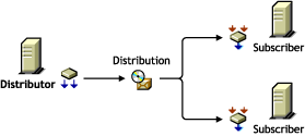 Figure 3-14 illustrates that a Distributor sends Distributions to Subscriber servers: