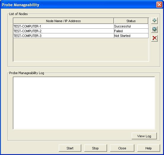 If the Probe Manageability tool is launched from a node level, the List of Nodes pane displays DNS name, IP address, or the Novell eDirectory name of the selected node. It also displays the status of the Probe Manageability operation. The status could be one of the following: