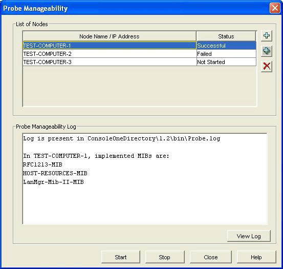 The log for nodes for which Probe Manageability is completed till that instance is shown in the Log pane. However, to view the information of a specific node, select the node in the List of Nodes pane. At the end of current Probe Manageability session, log for all the nodes is displayed in the Log pane.