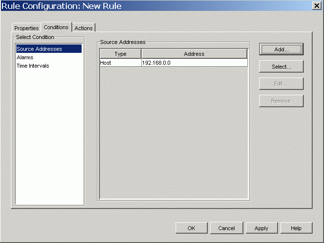 If you configure a condition to process an incoming alarm based on their source addresses, you receive only those alarms that are coming from the specified addresses.