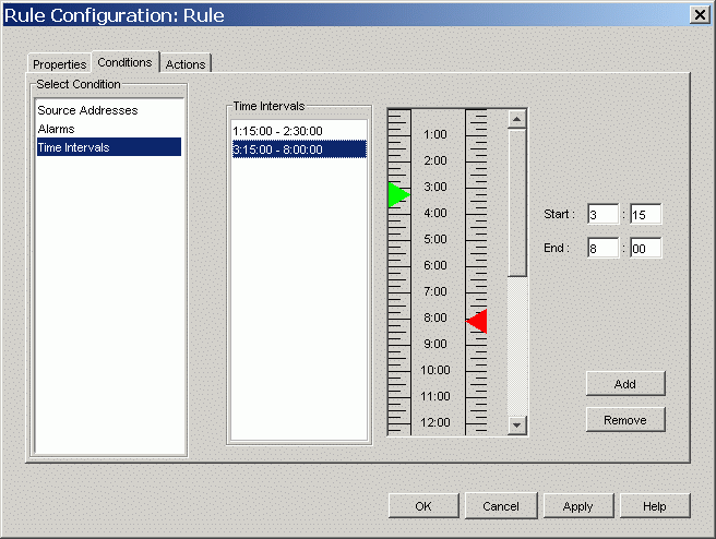 You can also specify a time interval as a configuration criteria. If you do so, you will get an alarm only if the alarm arrives within the stipulated time interval.