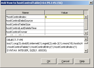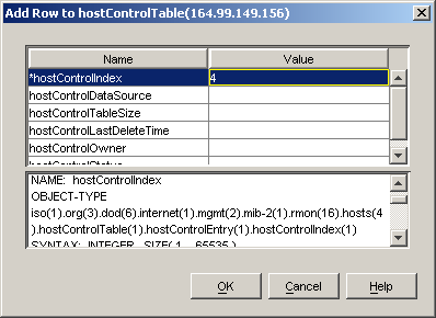 For more information about adding or modifying rows, see Adding Rows to an SNMP Table.