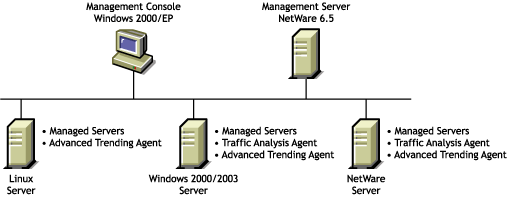Monitors all of the NetWare, Windows, or Linux servers that you want to manage.