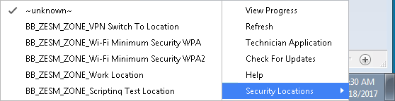 Right-click the ZENworks icon, and select Security Location > ~unknown~ to change the device’s location to the Unknown location.