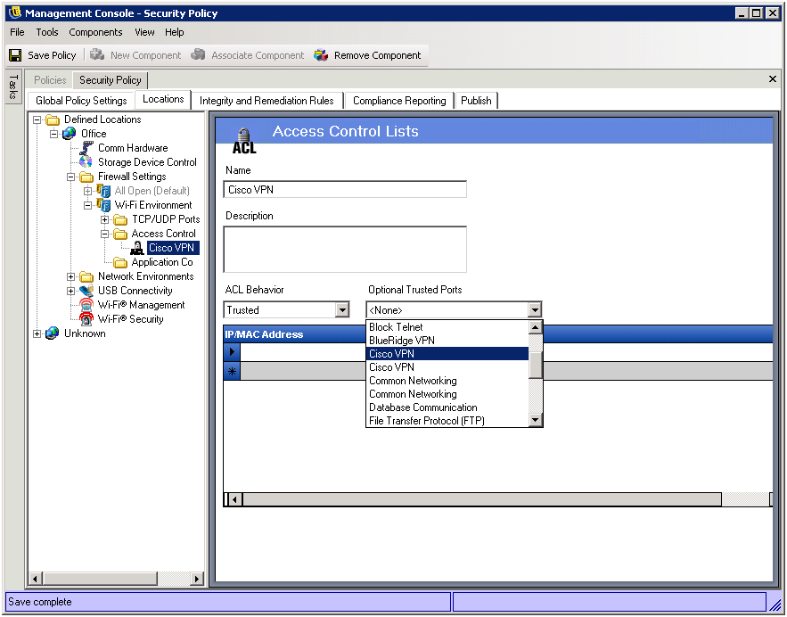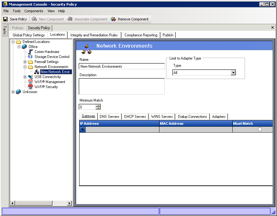 To access this control, open the Locations tab and click the Network Environments folder in the policy tree on the left.