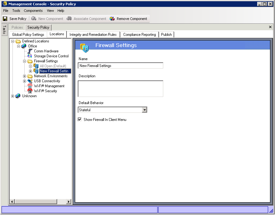 To access this control, open the Locations tab and click the Firewall Settings icon in the policy tree on the left.