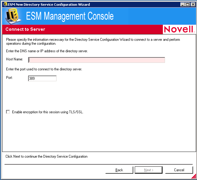 Specify a friendly name to describe the directory service configuration, then click to display the Connect to Server page.