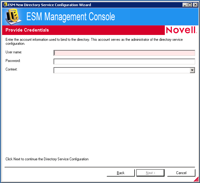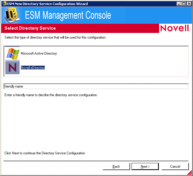 After installing ZENworks Endpoint Security Management, the New Directory Service Configuration Wizard automatically displays. If you have just installed the product and the Welcome page is displayed, skip to Step 4 in the following procedure.