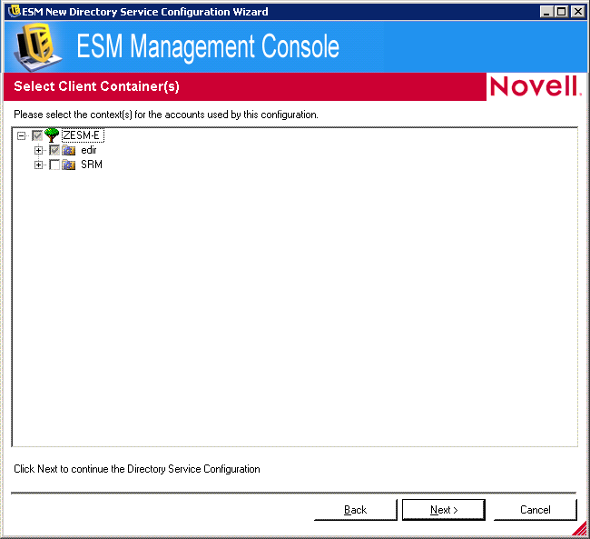 Browse to and select the directory partitions for this configuration, then click to display the Select Client Contexts page.